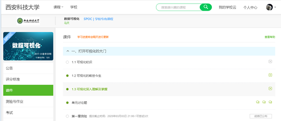 马老师花了近两周的时间,认真学习实践了学堂在线雨课堂、中国大学MOOC、超星学习通、QQ群课堂、腾讯课堂和腾讯会议等各大教学或直播平台,并对各平台的授课形式、互动形式、数据统计和稳定性等方面进行了分析对比。同时,还深入调研了2019年在学堂在线新建成的《虚拟现实技术》,以及中国大学MOOC新建成的《可视化导论》的MOOC资源,并与课程教材和MOOC的原教学团队进行了直接的沟通交流。