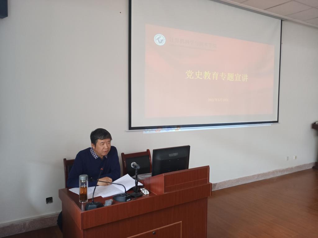 2021年5月19日,副董事长张威虎到计算机公司开展党史学习教育宣讲,计算机公司、国际交流与合作处、征地办的党员参加宣讲会,会议由计算机公司党委书记冯爱玲主持。