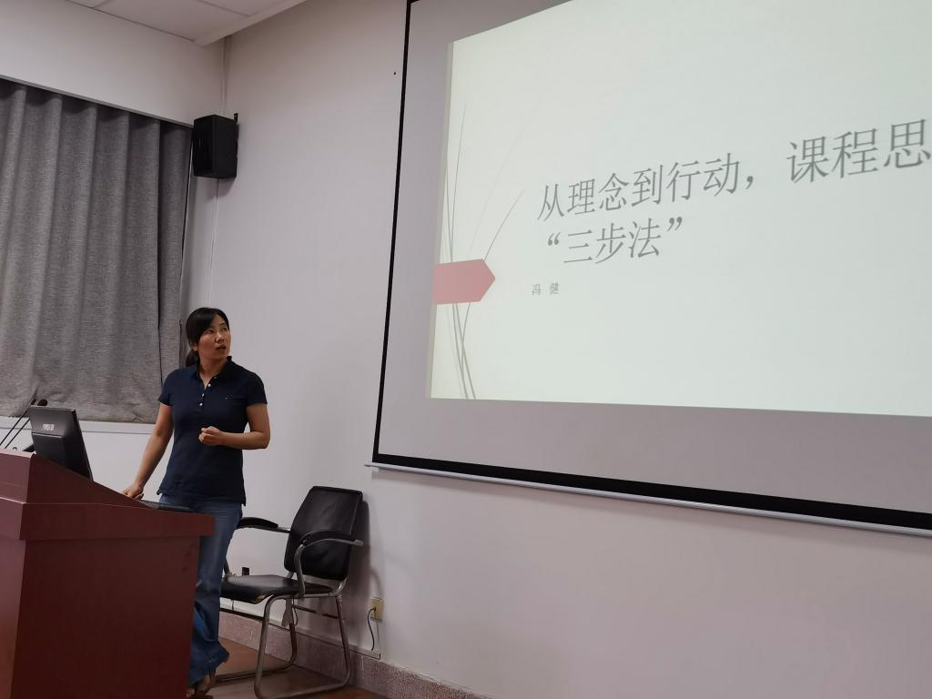 会上,孙艺珍老师结合自身的思政课教育实践,从“课程思政”的顶层设计、专业课程思政内容的选择和融入路径、开展专业课程思政的方法、案例分享和反思等方面作交流分享;冯健老师通过一门专业课的思政“三步走”,从教学目标设计、教案设计、教学设计、教学过程组织与实施、反馈与调整等方面与大家交流分享。孙艺珍老师和冯健老师的分享交流内容丰富,贴近教学实际,具有很强的借鉴意义。