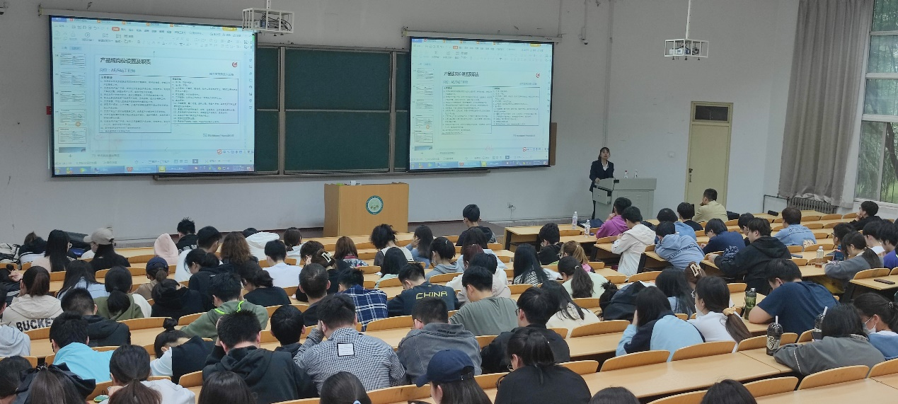 索高华对公司基本情况进行了介绍,对市场销售部的工作范围和销售岗位业务内容和要求进行详细讲解,纠正同学们对销售岗位的刻板印象。周静如从一个HR的角度讲解了如何去正确的书写简历、如何与HR交流、怎样正确投递简历、企业用人标准等方面的问题,邀请2024届本科生积极开展实习实践活动。最后,索高华、周静如还与同学们进行了现场互动交流。