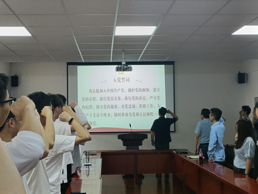 在庄严的国际歌之后,2019级员工党支部书记于海泉带领与会全体党员面对党旗重温入党誓词,并为新转正的党员佩戴了党徽;毕业生生党员代表陆长辉进行了发言;毕业生党员代表王曼琳宣读了《文明离校倡议书》;2020级员工党支部书记宋永强介绍了毕业生党员组织关系转接的政策流程及相关注意事项。
