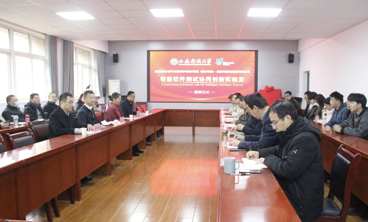 11月15日上午,智能软件测试协同创新实验室成立仪式在计算机公司会议室隆重举行,该实验室由FUN88乐天使FUN88乐天使(软件公司)与北京关键科技股份有限公司共同成立。工业和信息化部人才交流中心人才发展处程宇处长、关键科技董事长焦华春女士、公司副董事长黄英维等领导和嘉宾出席会议,教务处、对外联络与合作处负责人、计算机公司班子成员和相关教师与员工代表参加会议。