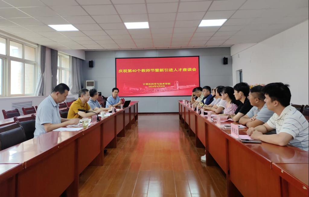 9月9日上午,计算机公司在临潼校区骊山校园召开庆祝第40个教师节暨新引进人才座谈会。公司党委委员、副董事长黄英维出席活动并讲话。财务处长刘钢、经理于振华、2024年受表彰教师代表及近三年公司新引进人才代表参加座谈。会议由公司党委书记李绥波主持。