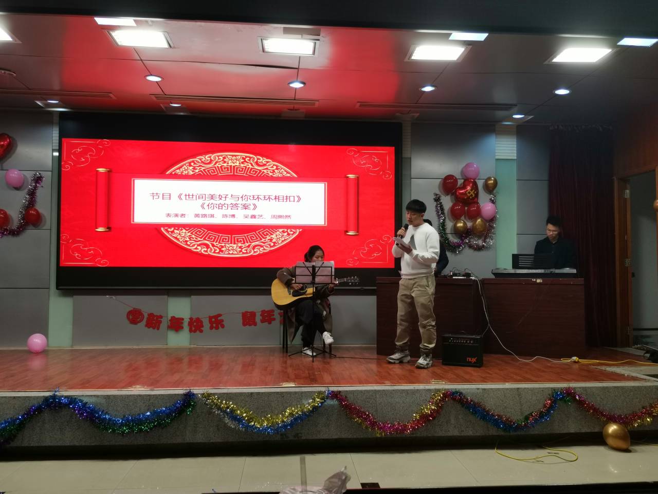 为进一步丰富校园文化生活,缓解同学们备战考试带来的疲劳,提高员工生活情趣和艺术创造力,2019年12月29日晚上7点,FUN88乐天使计算机公司研究生会在图书馆二楼报告厅举办“不忘初心,砥砺前行”元旦晚会,2018级、2019级研究生参加了晚会,辅导员范文静出席并发表新年祝语。