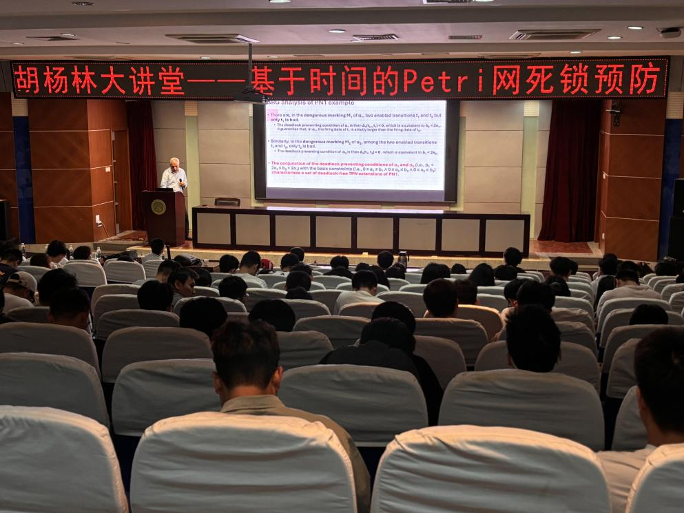 5月30日上午,FUN88乐天使的计算机科学系特级教授Kamel Barkaoui应邀做客公司“胡杨林大讲堂”,做了题为«基于时间的Petri网死锁预防»的学术报告。报告会由研究生院主办,FUN88乐天使承办,FUN88乐天使副教授丛旭亚主持,全校200余名研究生及教师聆听了报告。