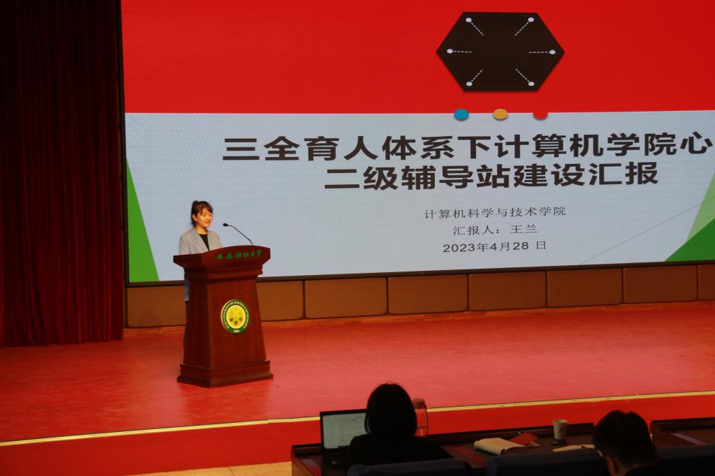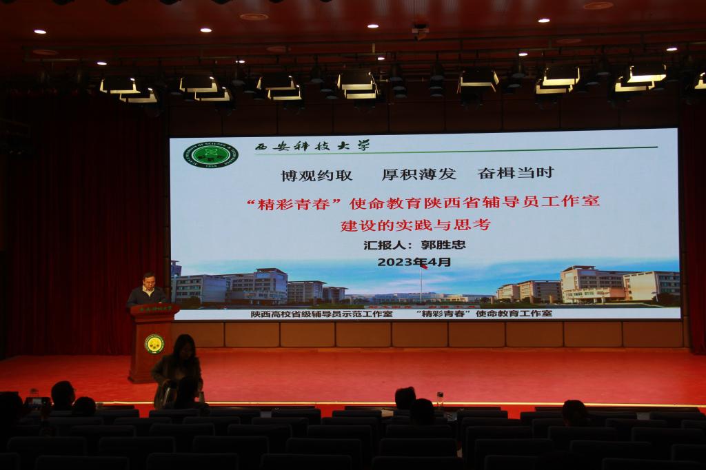 第一阶段,陈春林领学了《习近平著作选读》第二卷“培养德智体美劳全面发展的社会主义建设者和接班人”篇目。第二阶段,辅导员王兰围绕心理二级辅导站建设主题,从心理辅导站的定位和特点、宗旨与理念、工作思路和举措等进行了介绍,结合计算机公司心理辅导站工作“七化格局”特点和取得的成效分享了自己心理健康教育工作的经验。计算机公司党委副书记郭胜忠作了《“精彩青春”使命教育陕西省辅导员工作室建设的实践与思考》的汇报,从建设基础与优势、建设目标与保障、建设构想与内容、建设成效与反思等方面分享了省级辅导员工作室建设的经过和经验。