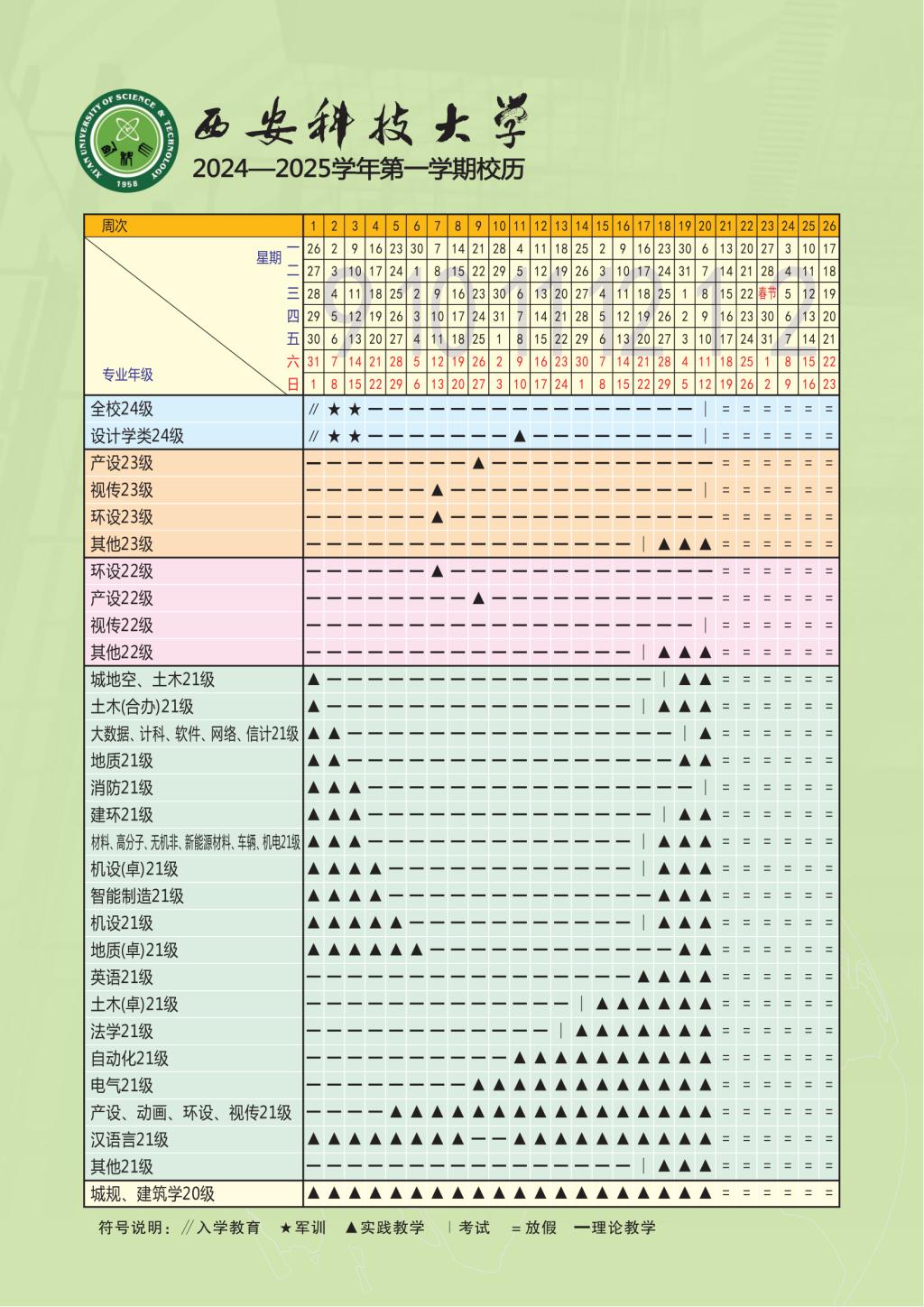 2024-2025学年第一学期校历
