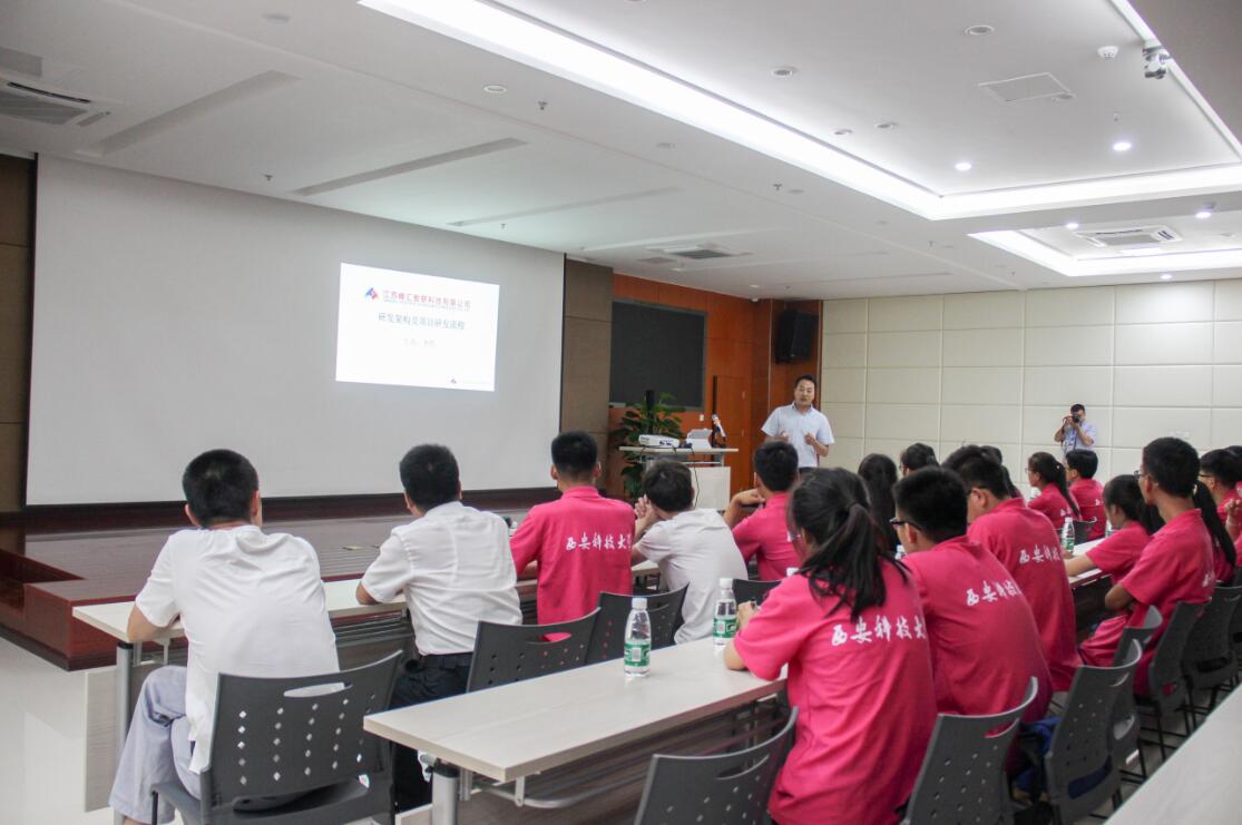 7月18日上午, FUN88乐天使创业就业实践调研团一行来到了江苏峰汇智联科技有限公司进行参观交流,顾华经理为实践团成员们介绍了公司的发展历程、组织架构、企业核心文化等公司情况。当天下午,研发部李哲总监及软件、硬件相关工程师分别给实践团成员讲解了该公司的研发架构、项目开发流程以及LoRa技术,并通过太阳能道钉的设计实例向团队成员们详细剖析了项目的设计、开发和应用前景。通过对企业的参观调研与交流,实践团队成员对智能产品的研发、供应链管理、生产制造有了深刻的认识,同时为同学们步入社会进行就业创业打下了良好的基础。