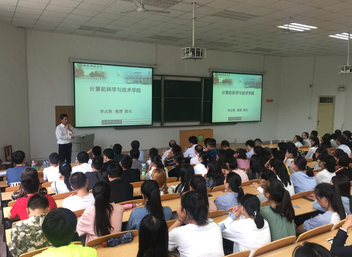 9月8日上午,计算机公司在临潼校区9#105召开2017级本科生开学典礼暨专业介绍会。计算机公司党委书记冯爱玲、副书记陈伟伯、经理李占利、副经理贾澎涛、副经理马天,各系(部)主任及实验室、计算中心、创新创业教育中心相关负责人、全体辅导员及教师代表和300多名2017级新生参加了开学典礼。大会由公司分团委书记马继刚主持。