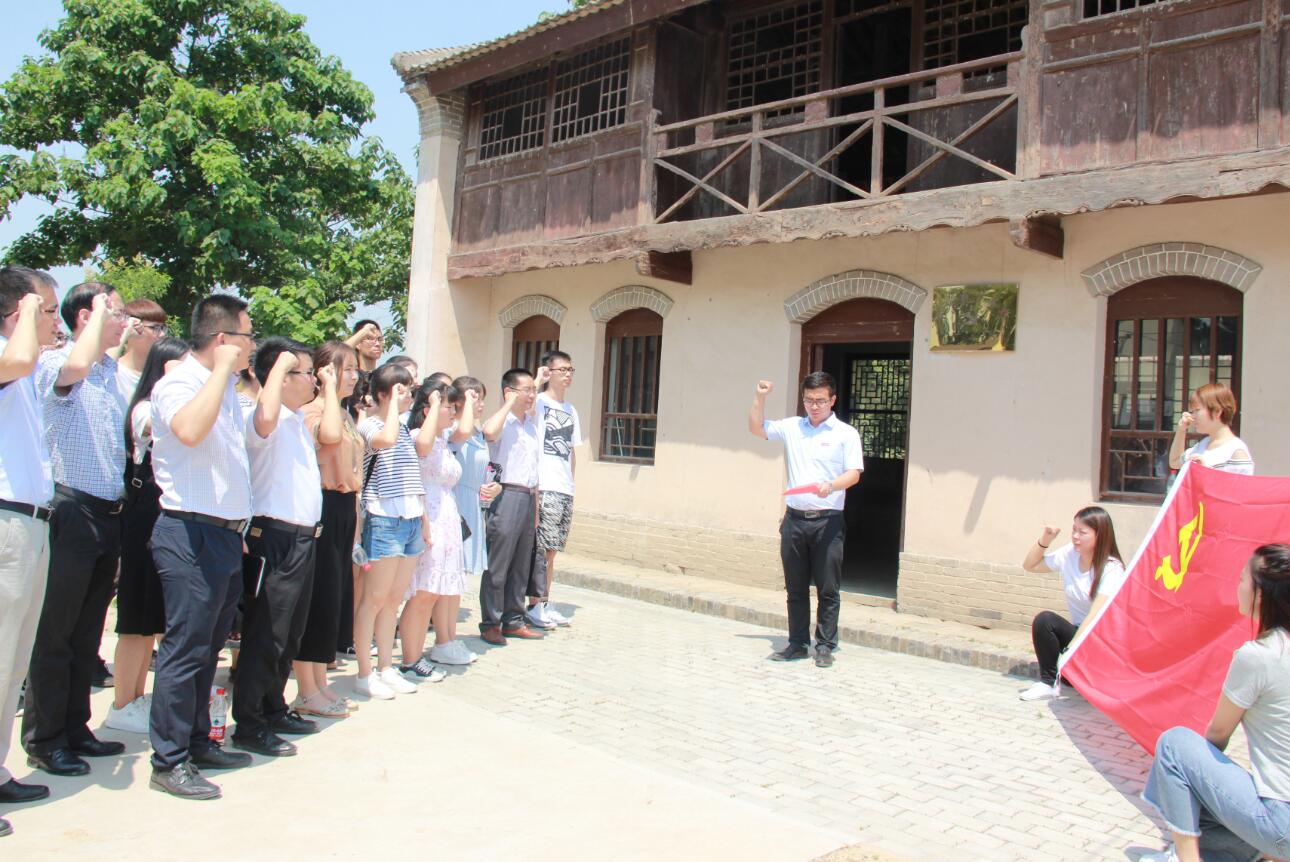 仪式结束后,公司全体师生党员参观了党史教育基地——临潼地下党早期活动旧址,并在旧址阁楼前重温了入党誓词。通过参观临潼地下党早期活动旧址,回顾中共地下党、共青团组织的光辉历史、缅怀革命先烈的丰功伟绩,师生党员纷纷表示,要以这次现场教育为契机,继承革命传统,弘扬优良作风,牢记党的宗旨,坚定理想信念,以实际行动积极参与到“精准扶贫”活动中。