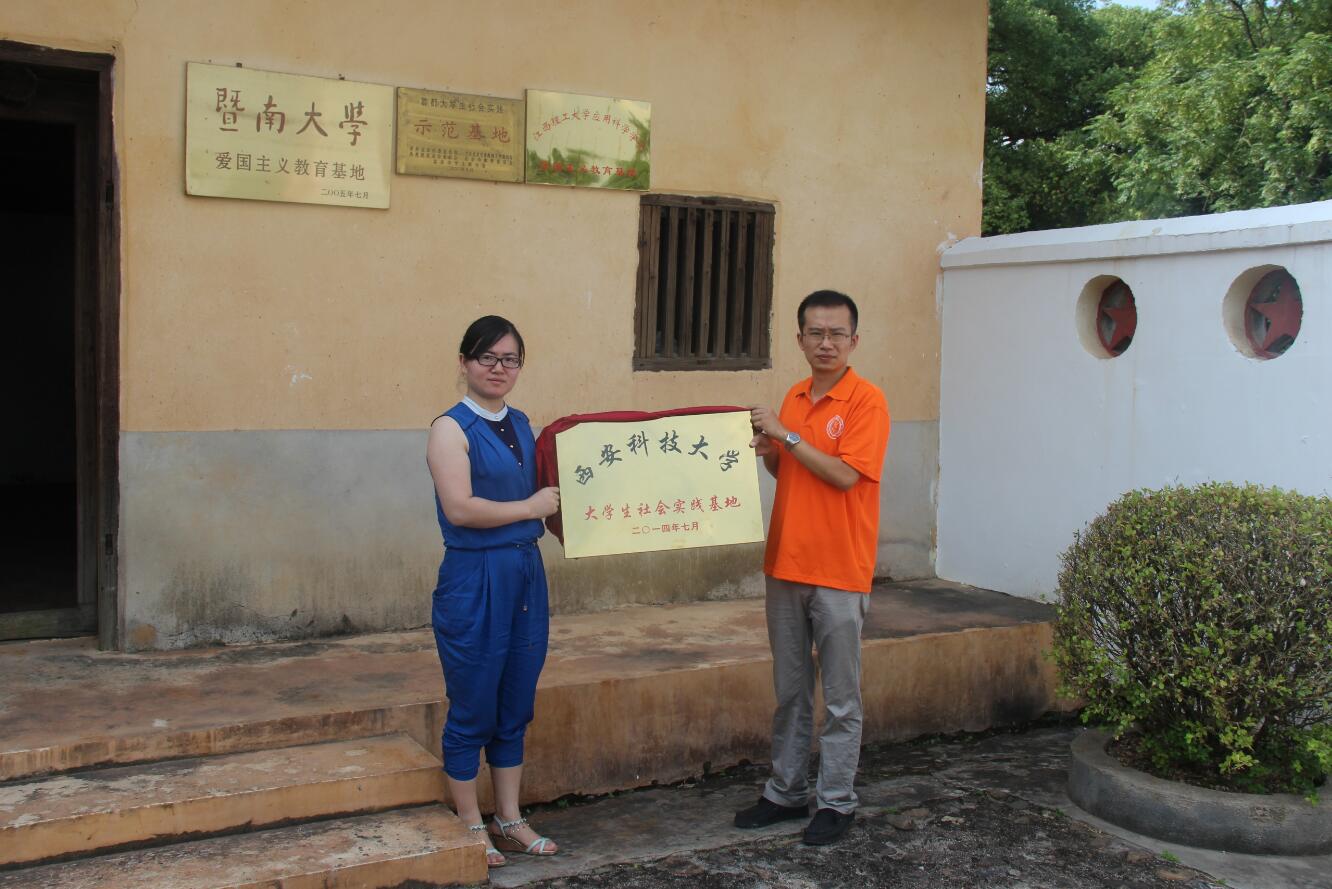 7月16日,实践队成员在瑞金市团市委书记阮玉的陪同下到达中国共产主义青年团(少共)中央局旧址举行FUN88乐天使老员工社会实践基地揭牌仪式,瑞金市团市委书记阮玉、FUN88乐天使计算机公司团委书记马继刚、通信公司团委书记郝卿、计算机公司教师胡军卫参加揭牌仪式。首先,瑞金市团市委阮书记和FUN88乐天使马继刚老师为实践基地正式揭牌。揭牌仪式结束后,阮书记与FUN88乐天使师生就团史和瑞金红色文化进行了深刻交流。阮书记希望实践队成员传承红色文化,在实践中进一步加深了解。随后一行参观了中央革命根据地共青团史料馆,主要对苏区共青团组织沿革、团的思想建设、团的中心任务、共产儿童团工作等进行了详细的了解,使得队员们深刻的认识到在那战火纷飞的年代中,团组织就像一轮光芒四射的的朝阳,照亮了苏区广大青年前进的道路,这将会时刻激励实践队成员们在以后学习工作中更加努力,牢记团的光辉使命,在实践中国梦的征程中,拼搏前进。最后在这种浓厚的红色氛围的影响下,全体学员在团中央旧址红旗下追溯团的历史举行了重温入团誓词仪式。